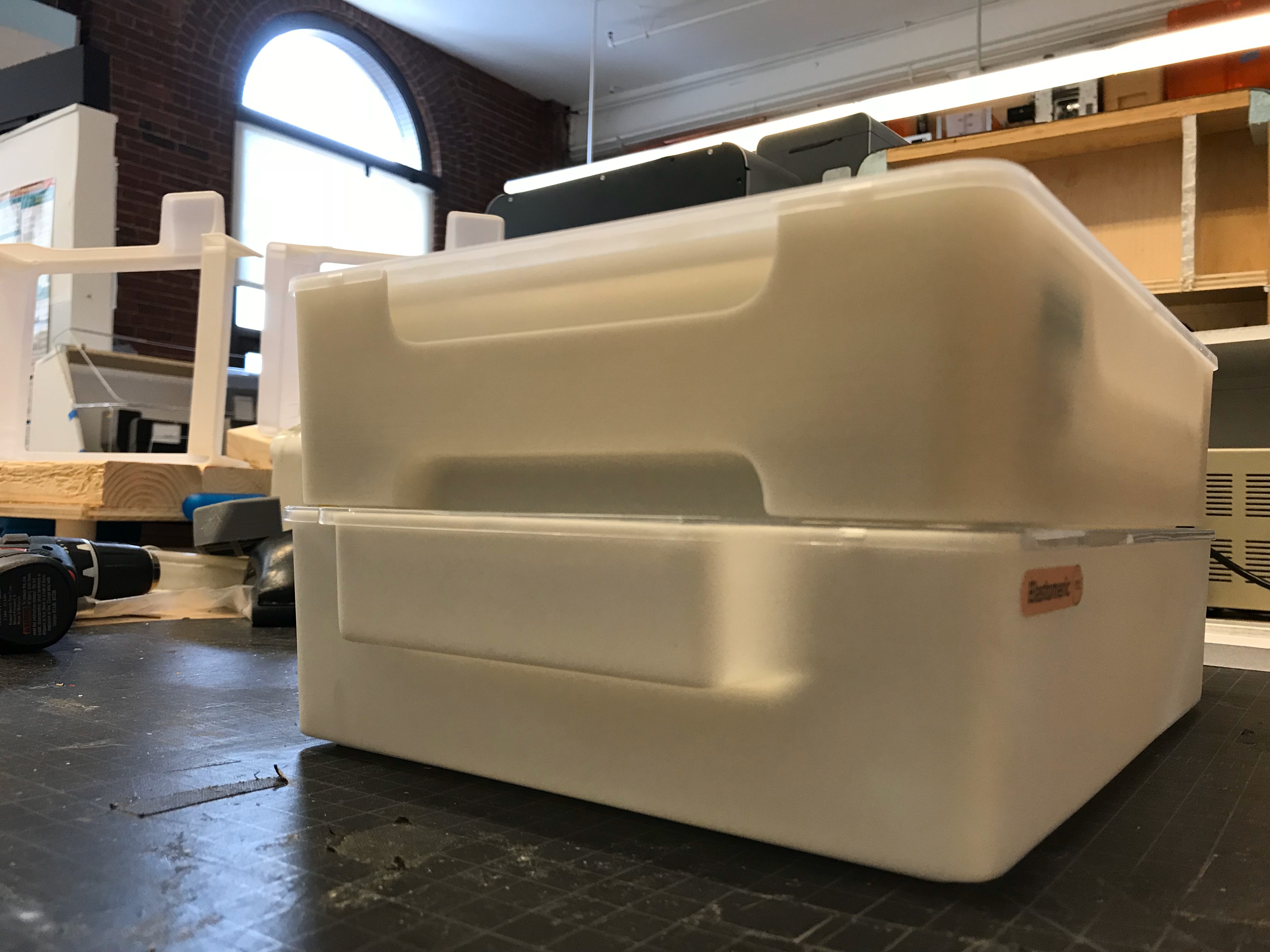 The previous resin tanks were difficult to handle and store, which resulted in longevity issues. The new tank design featured a flexible film that introduced new durability concerns and mechanical complexity. To solve these issues, I developed a tank design with improved handle ergonomics and insertion UX that hides much of the added complexity. I also designed a case to extend the product life by protecting the film from damage and preventing UV light exposure and premature resin curing. This case also features integral carrying handle recesses and alignment features for easy stacking and efficient storage.